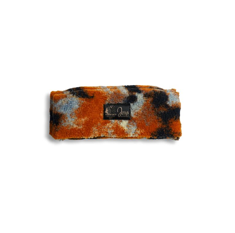 今回は、ボア生地を橙色と黒を基調としたアートな柄。